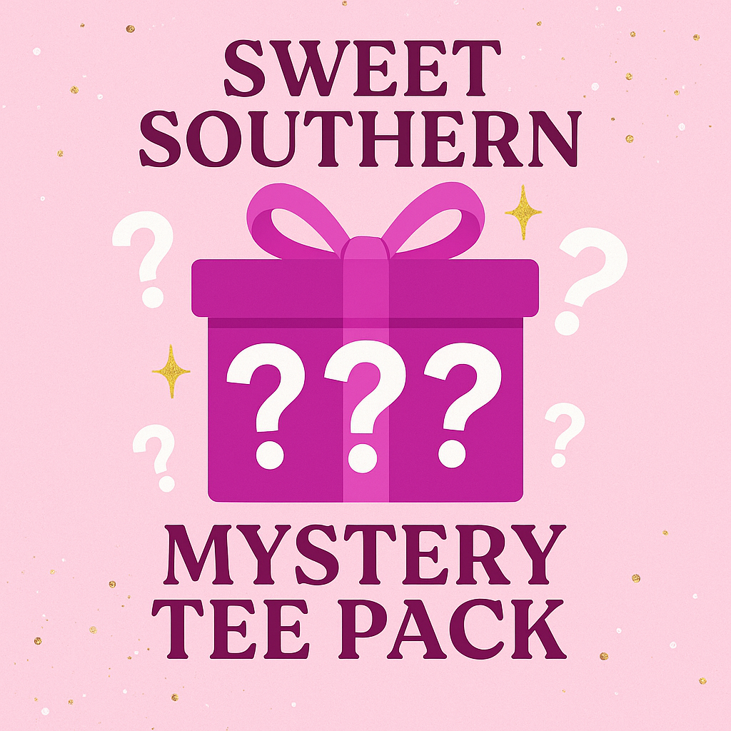 ✨ Like surprises? You’ll love our Mystery Tee Packs! Choose your size and we’ll hand-pick a glam tee (or more) just for you. Some may be limited edition designs, exclusive past favorites, or unreleased samples! Shirts are a mix of Comfort Colors, Bella Canvas and Gildan Softstyle.